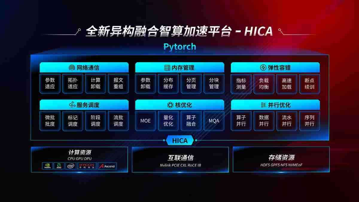 通过自研的服务层、、中间适配层、、以及调度编排算法,,采用数据并行、、模型并行等多种并行方式,,,,把并行计算任务进行有效的分解,,使其分别由相应的软件栈和算力资源来承接。。。。当GPU资源变化,,,,HICA可以实时动态调度计算子任务并调整模型拓扑和架构,,,以充分聚合各种算力资源。。